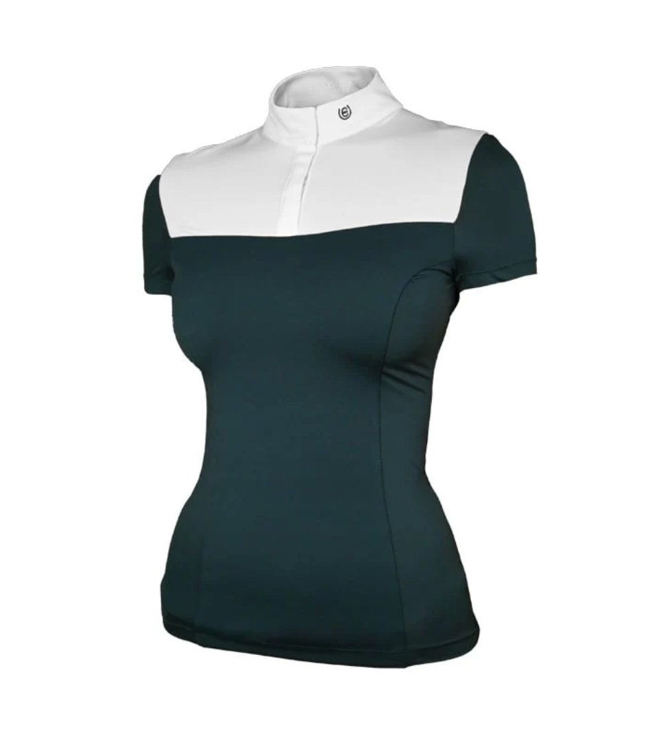 The Fine Line Competition Top Dramatic Monday Short Sleeve is designed in an elegant dark green color with a touch of blue and with white details. Decorated with a small logo embroidery in dark green and hidden front closure for a clean and sporty look.