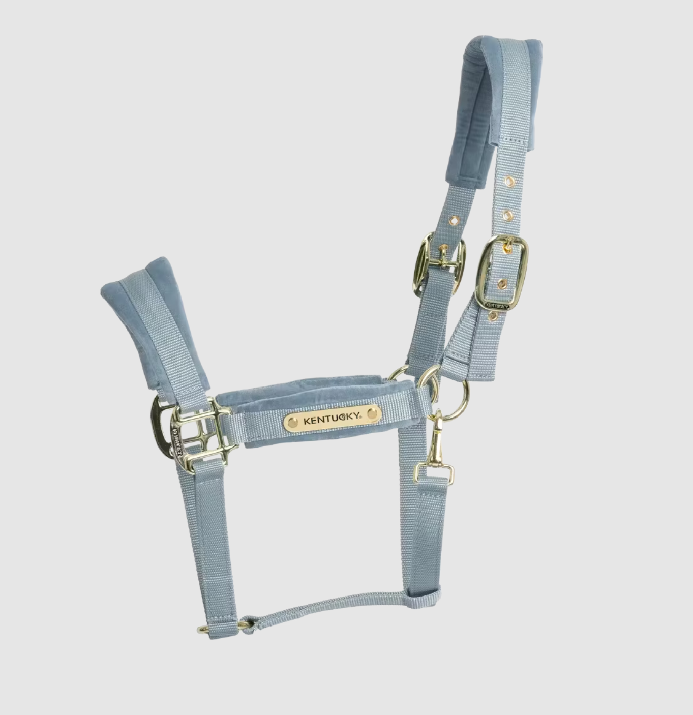 The halter is made from a strong nylon, to ensure your horse’s safety. The nose, cheek, and crownpiece are reinforced with velvet padding. This is very soft to touch and comfortable to wear. The halter closes with a gold brass carabiner hook and is adjustable on both sides of the crown piece for a perfect fit.