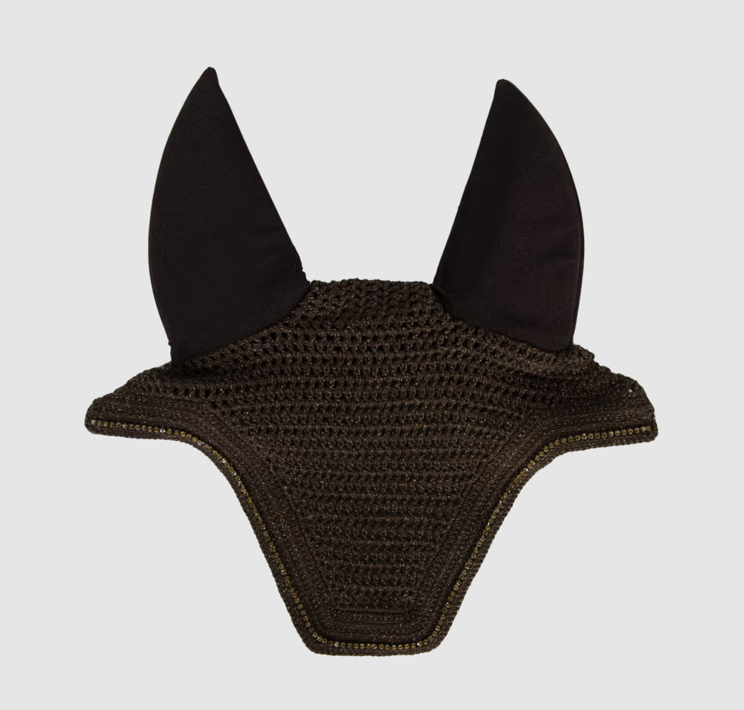 Our Fly Veil Sparkling is a combination of the modern American look and Kentucky Horsewear’s expertise. This fly veil is hand knitted for better durability. We added some sparkle by using sparkling yarn. The line of rhinestones in the same color as the fly veil really tops it off! The Fly Veil Sparkling protects the horse’s ears against flies and sound while riding. The material around the ears is stretch and slim fit. The soundproof ears don’t slide off and offer a perfect fit as they are a little bit thinner. They remain equally soundproof. Therefore, the horse doesn’t get distracted by noise. The neck part is longer so it can’t slip. The Fly Veil Sparkling does not have a visible logo, therefore rider or sponsors can embroider their own logo. Hand washing only.